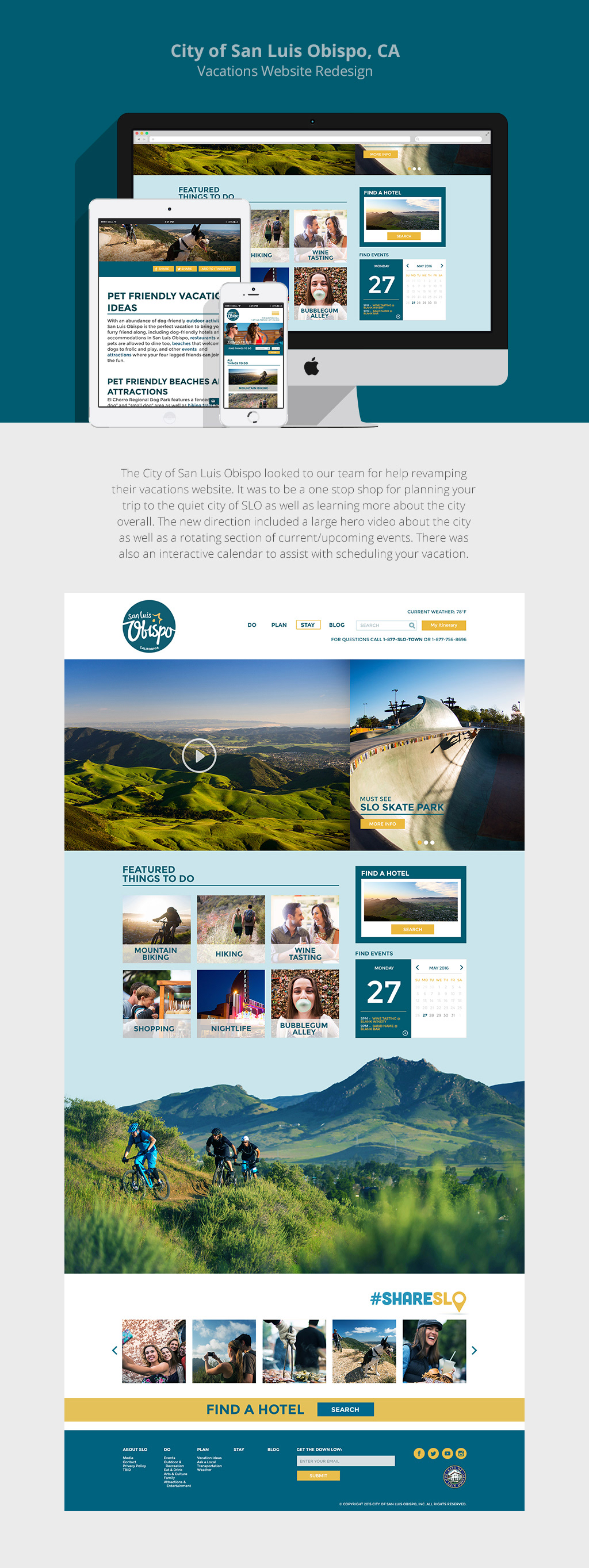 A complete overhaul of SanLuisObispovacations.com over the span of 3 months. From website to social, Studiogood was hired to redesign the overall look and feel of the city's vacation website and brand.